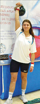 Темиртауская гиревичка Татьяна ПОТЁМКИНА (на снимке) установила очередной мировой рекорд. На чемпионате Казахстана, который прошел на днях в Алматы, 147 раз подняла в рывке 24-килограммовую гирю.