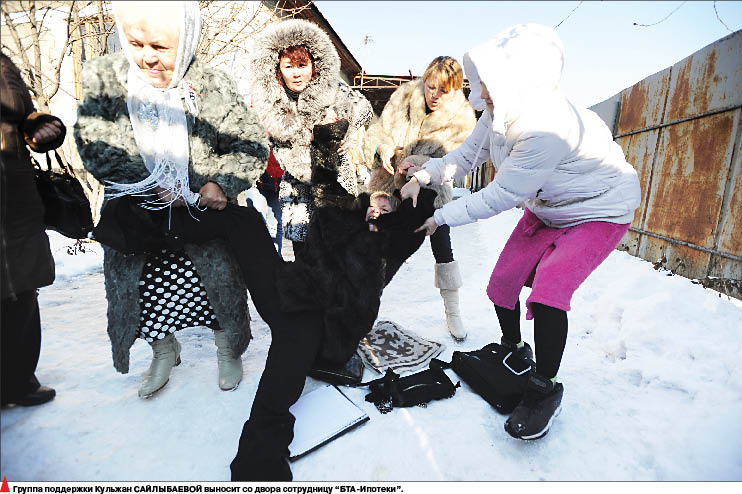 Вчера в Алматы несколько десятков человек из общественного объединения “Оставим народу жилье” пикетировали головной офис АО “БТА-Ипотека”. Таким образом люди выразили свой протест по поводу предпринятой сотрудниками компании днем раньше попытки выселить из купленного в кредит дома семью заемщицы “БТА-Ипотеки” Кульжан САЙЛЫБАЕВОЙ.