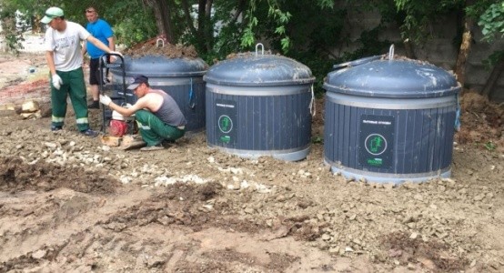 Отмечается, что емкость подземных мусорных контейнеров объемом 3 и 5 куб.м производства Финляндии с технологией подземного сбора и хранения твердых бытовых отходов. Один контейнер емкостью 3 куб. м заменяет 3 обычных, привычных контейнера. Большая часть мусора находится под землей. Это позволяет экономить в 4-5 раз больше дворового пространства. Кроме того, подобный контейнер ограничивает размножение бактерий и уменьшает распространение неприятных запахов из-за низкой температуры, так как большая часть самого контейнера находится под землей.