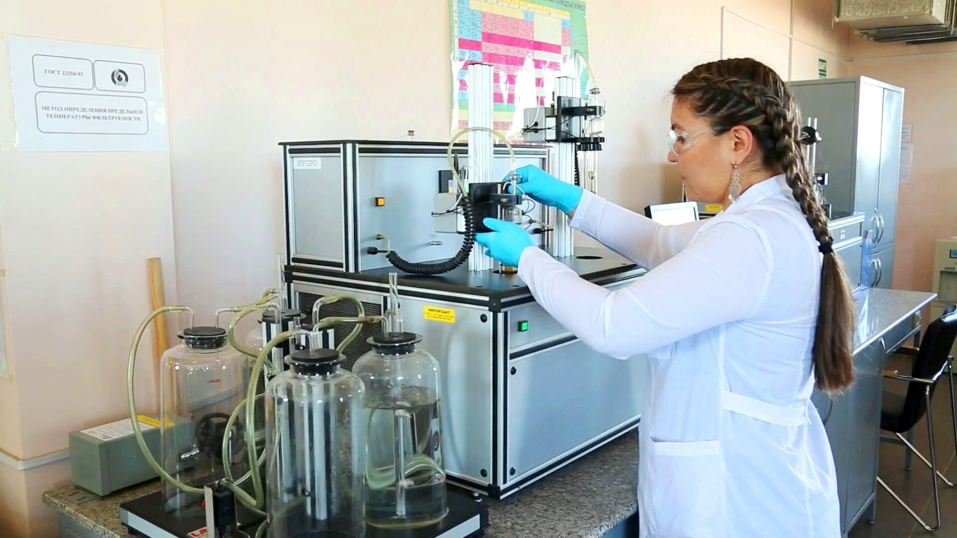 Закончив с отбором проб, мы отправились в лабораторию. Она оборудована по последнему слову техники. Все приборы произведены в Европе и России. Например, такой дорогостоящей установки по определению октанового числа бензина, которая занимает всю комнату, в стране не более десяти.