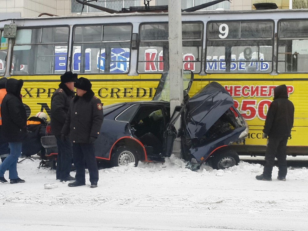 Ранним утром на проспекте Независимости в Усть-Каменогорске иномарка столкнулась с трамваем.