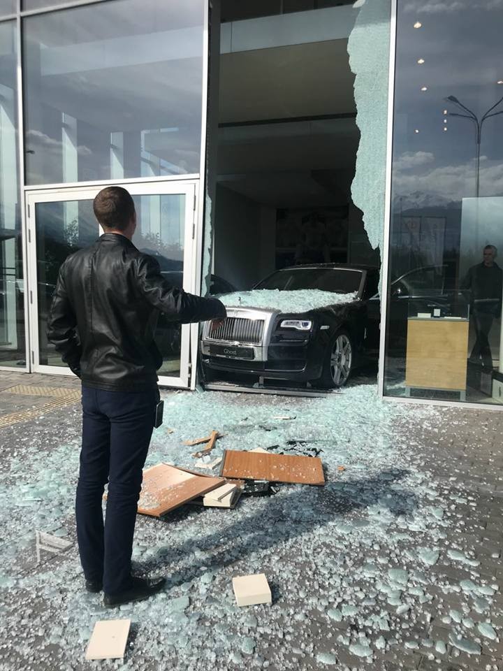 В Алматы посетитель автоцентра «Бавария» снес стеклянную витрину на новом Rоlls Royce, сообщила PR-менеджер Astana motors Рита Сарсенова.