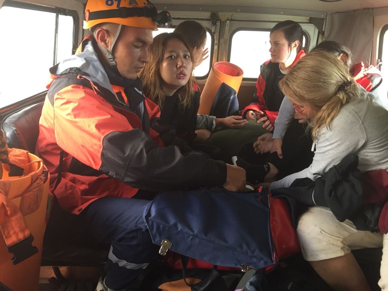 «В 18.06 оперативной группой спасателей в ходе поисков найдены туристы. Спасатели приступили к спуску туристов с горы. В 18.55 спасатели благополучно спустили потерявшихся туристок. (…) Туристки доставлены до личного автотранспорта, в медицинской помощи не нуждаются», - добавил Р. Иманкулов.