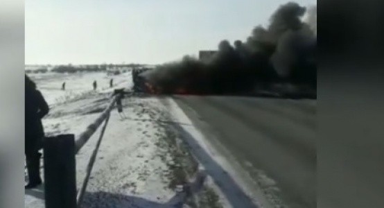Дотла сгорело авто и четверо пострадали в ДТП на трассе Караганда-Шахтинск