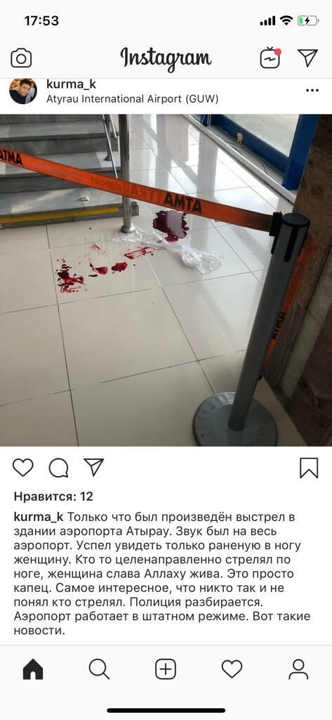 Среди этих людей оказалась жительница Атырау Наталья ДАЖУК, встречавшая родственников из столицы. Пуля попала женщине в ногу. Свидетелями происшествия стали десятки пассажиров и сотрудников аэропорта. Пострадавшую в экстренном порядке госпитализировали в Атыраускую областную больницу.