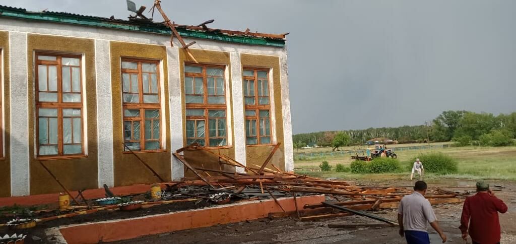 Еще одним объектом, пострадавшим от шквального ветра в регионе, стал культурно-досуговый центр в селе Жолкудык. Площадь срыва составляет около 80 кв. м. Здание 1968 года постройки.