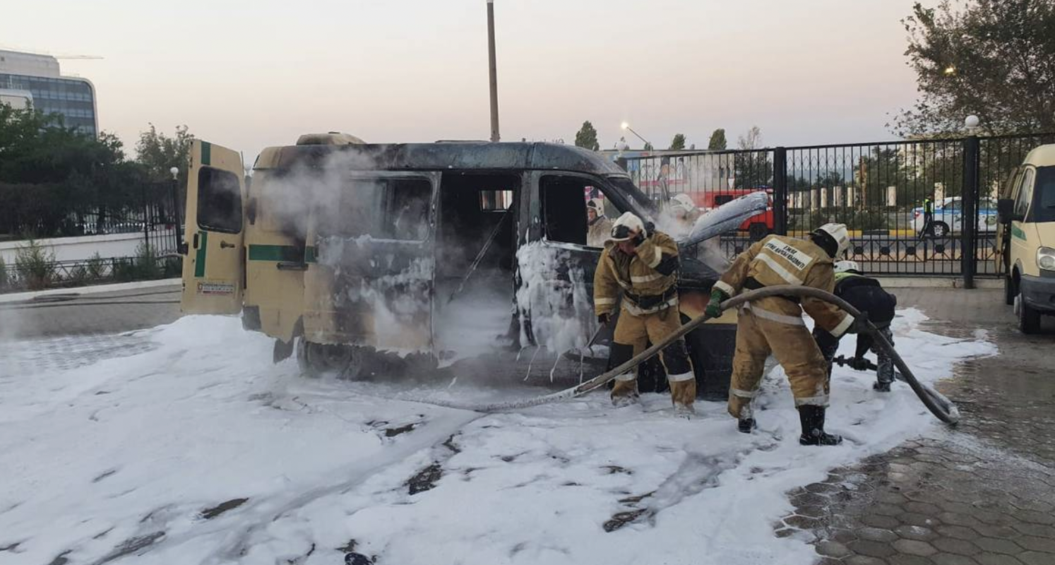 «Пожар произошел в 07.22. На парковке банка Halyk Bank произошло горение бронированного инкассаторского автомобиля марки «Газель», - говорится в сообщении.
