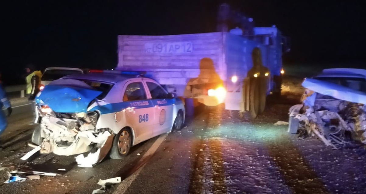 Автомобиль марки Lexus врезался в грузовик и полицейское авто в Мангистау, сообщает официальный интернет-ресурс министерства внутренних дел.