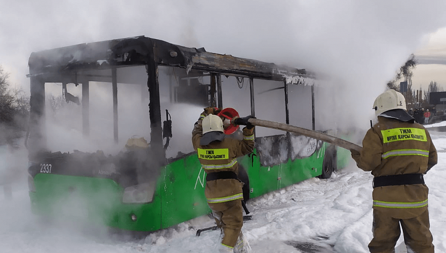 «15 февраля в 8.27 пожарные расчеты были направлены в Медеуский район, улица Толе би, угол ВОАД. По прибытии обнаружено горение автобуса марки «ЛиАЗ» на площади 25 м.кв», - говорится в сообщении в среду.
