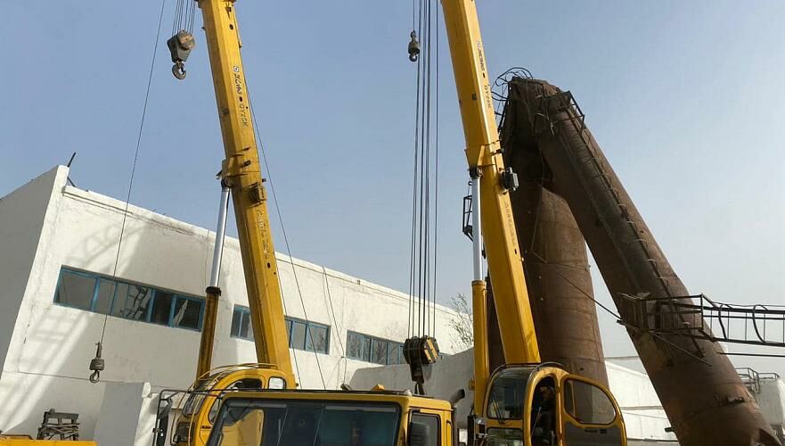 Из-за сильного ветра в Кызылординской области пополам сложилась большая металлическая труба