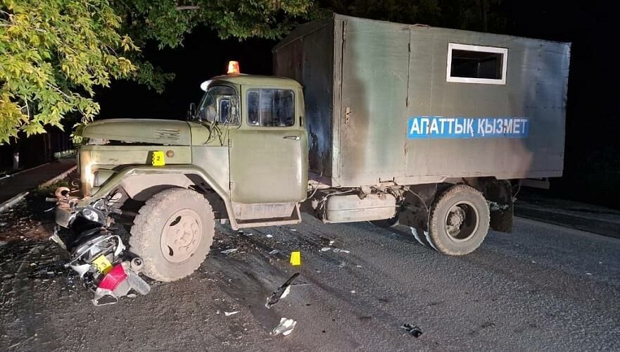 «13 августав 22.45 в дежурную часть отдела полиции Атбасарского района поступило сообщение от диспетчера скорой помощи о том, что в районе сквера Победы произошло дорожно-транспортное происшествие. Прибывшие на место происшествия стражи порядка предварительно установили 34-летнего водителя автомашины ЗИЛ-130, который, совершая маневр «разворот налево», допустил столкновение с мопедом марки Jialing под управлением 16-летнего подростка. В результате ДТП водитель мотоцикла от полученных травм скончался на месте происшествия», - сообщили в пятницу в пресс-службе департамента полиции Акмолинской области.