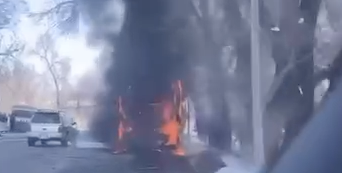 Пассажирский автобус сгорел в Алматы
