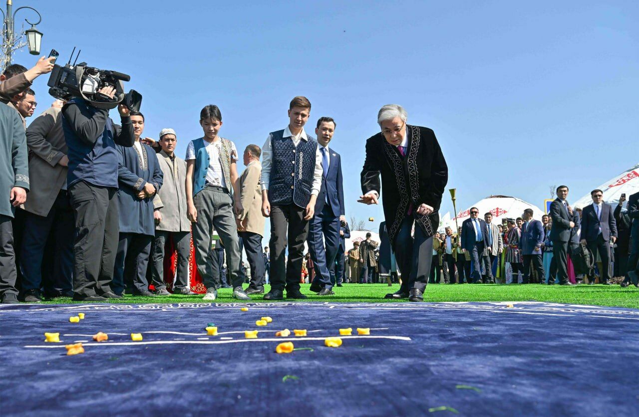 Президент Казахстана Касым-Жомарт Токаев принял участие в народных гуляньях по случаю праздника Наурыз в туристическом комплексе "Керуен-сарай" в Туркестане.