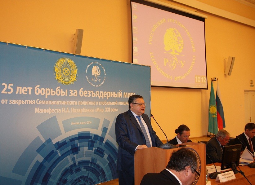 31 августа в Российском государственном гуманитарном университете состоялась международная научно-практическая конференция на тему: «25 лет борьбы за безъядерный мир: от закрытия Семипалатинского полигона к глобальной инициативе Манифеста Н.А.Назарбаева «Мир. XXI век».