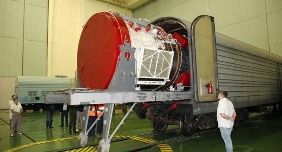 Уточняется, что специалисты предприятий Роскосмоса провели выгрузку космического корабля из вагона и установили его в стенд.