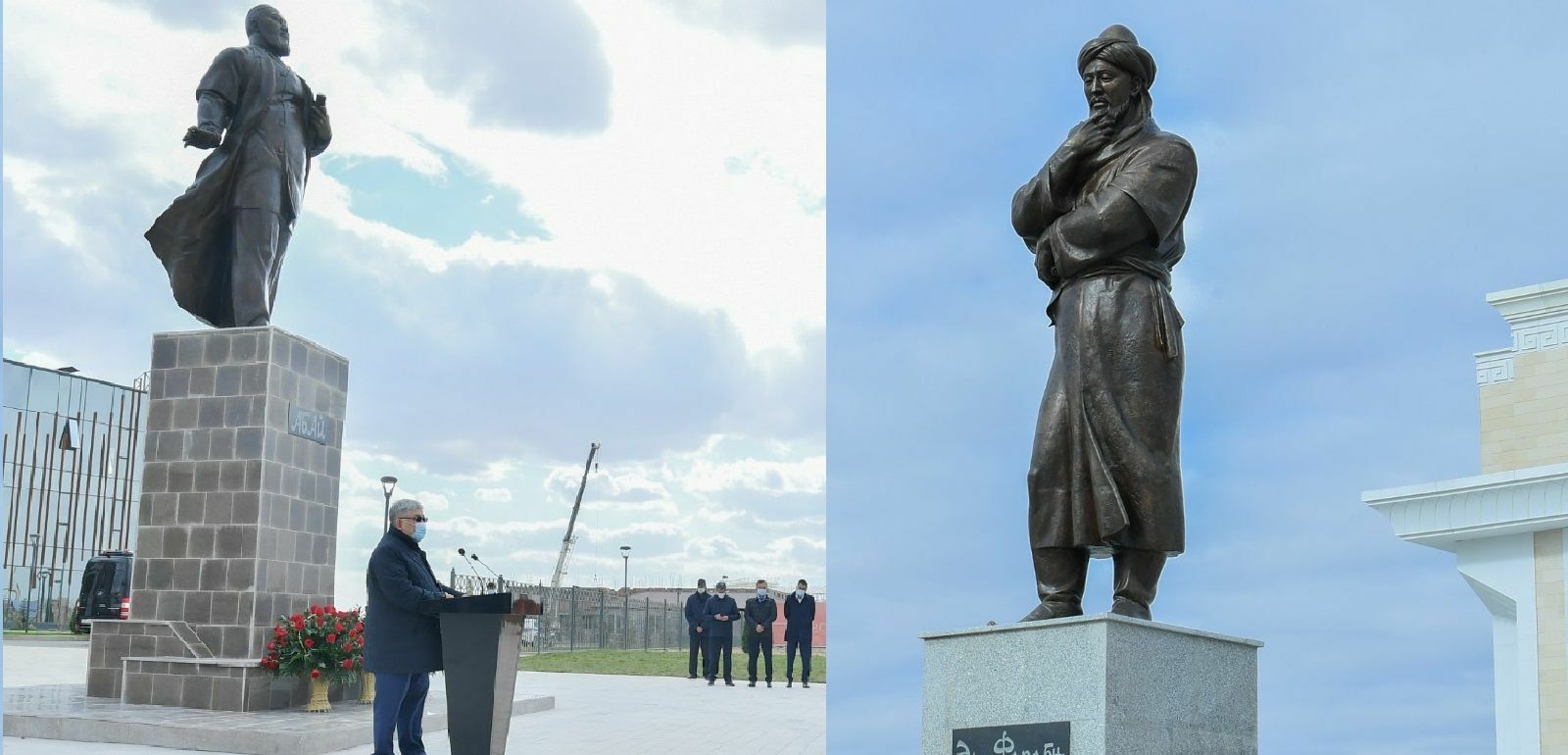 Отмечается, что скульптура высота скульптуры одного из крупнейших представителей восточной философии и науки аль-Фараби, изготовленной из бронзы, составляет 3,5 м.