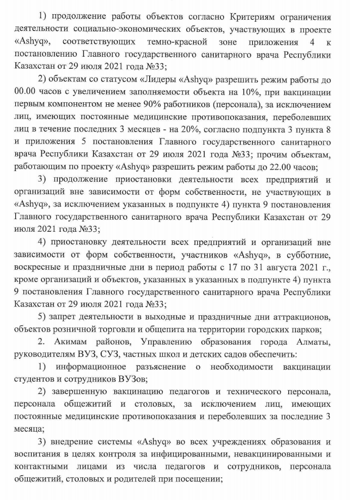 Новое постановление в связи с напряженной эпидситуацией в Алматы подписал Бекшин