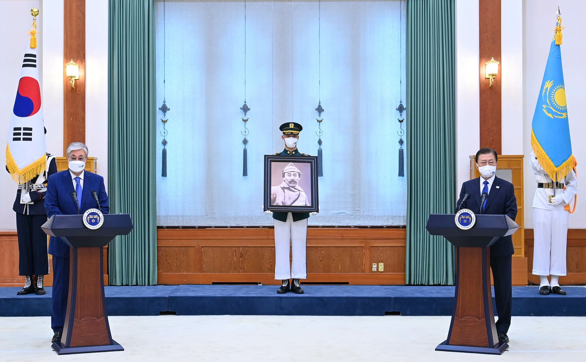 Президент Казахстана в своем выступлении назвал передачу останков национального героя Кореи генерала Хон Бом До проявлением искреннего уважения к корейскому народу.