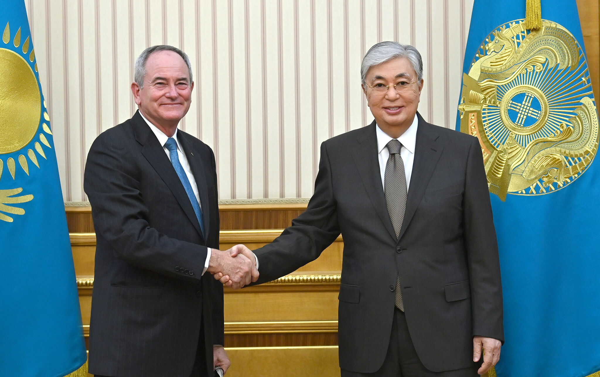 В ходе беседы с Джеймсом Джонсоном Касым-Жомарт Токаев был проинформирован о результатах работы корпорации в нашей стране и планах на предстоящий период. В частности, были затронуты вопросы скорого завершения строительно-монтажных работ на Проекте будущего расширения на месторождении Тенгиз.