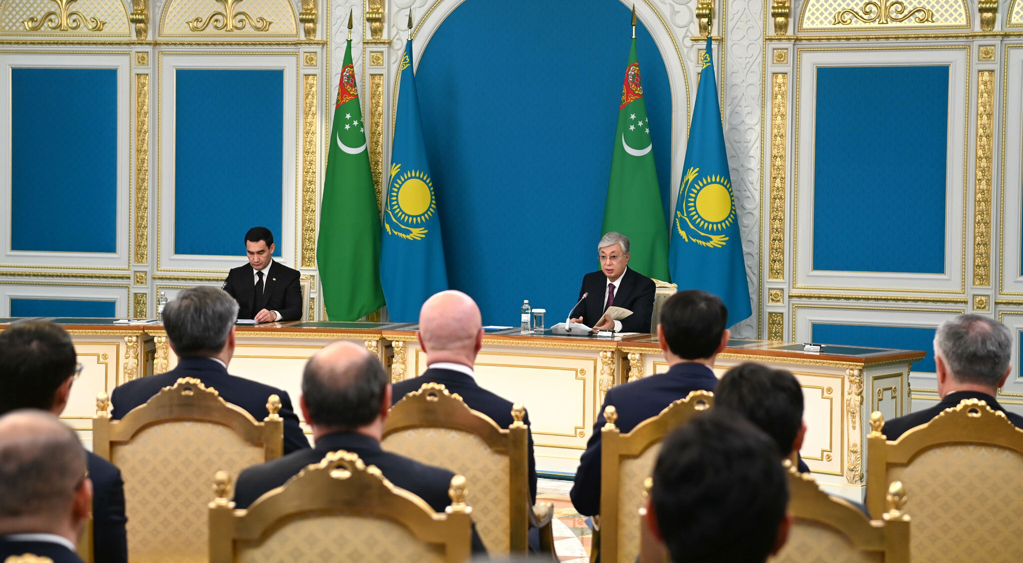 По завершении переговоров в узком и расширенном форматах Президент Казахстана Касым-Жомарт Токаев и Президент Туркменистана Сердар Бердымухамедов провели брифинг для представителей средств массовой информации.