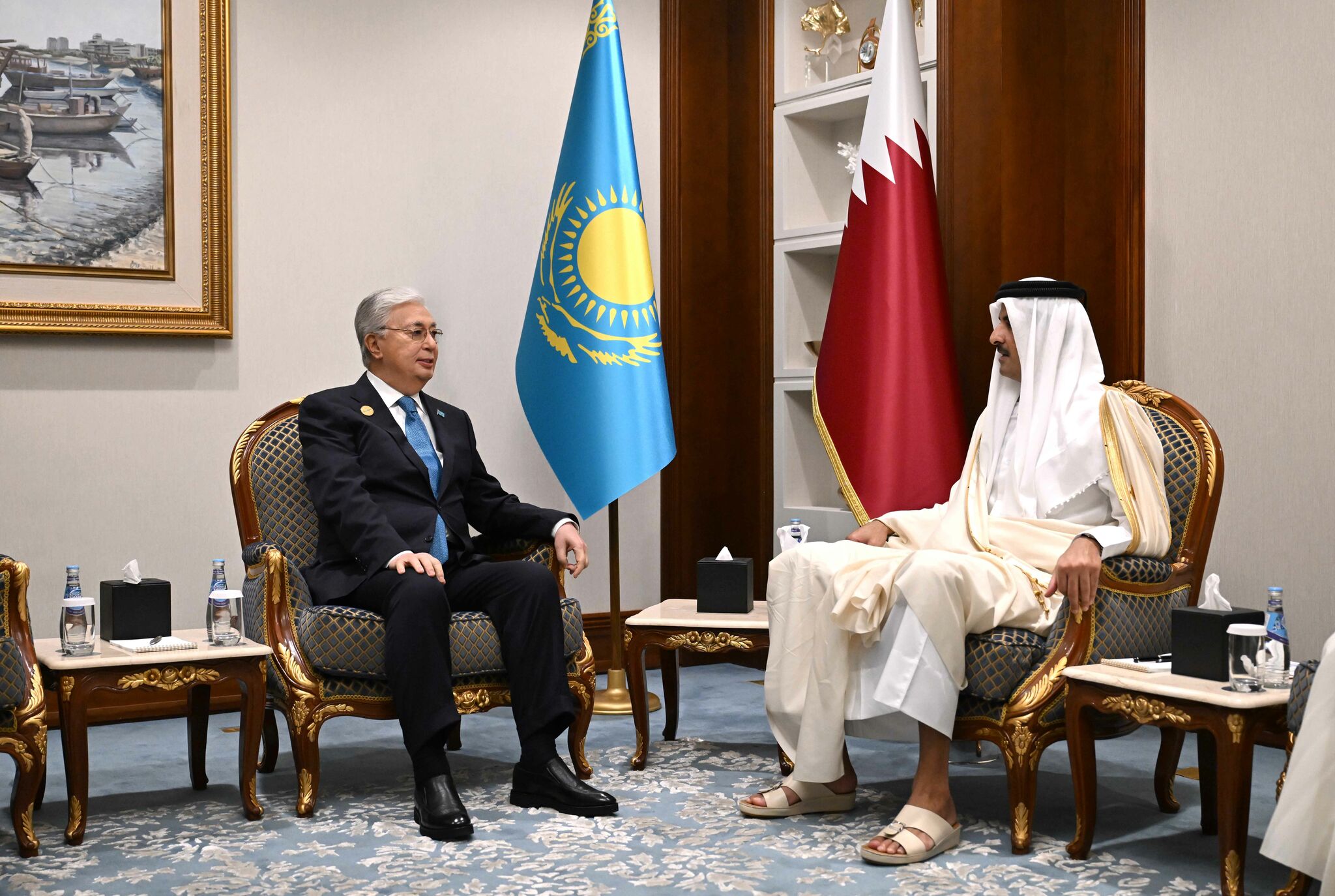 Касым-Жомарт Токаев и шейх Тамим бен Хамад Аль Тани согласились, что активный политический диалог на высшем уровне будет и впредь способствовать качественному углублению казахско-катарских отношений.
