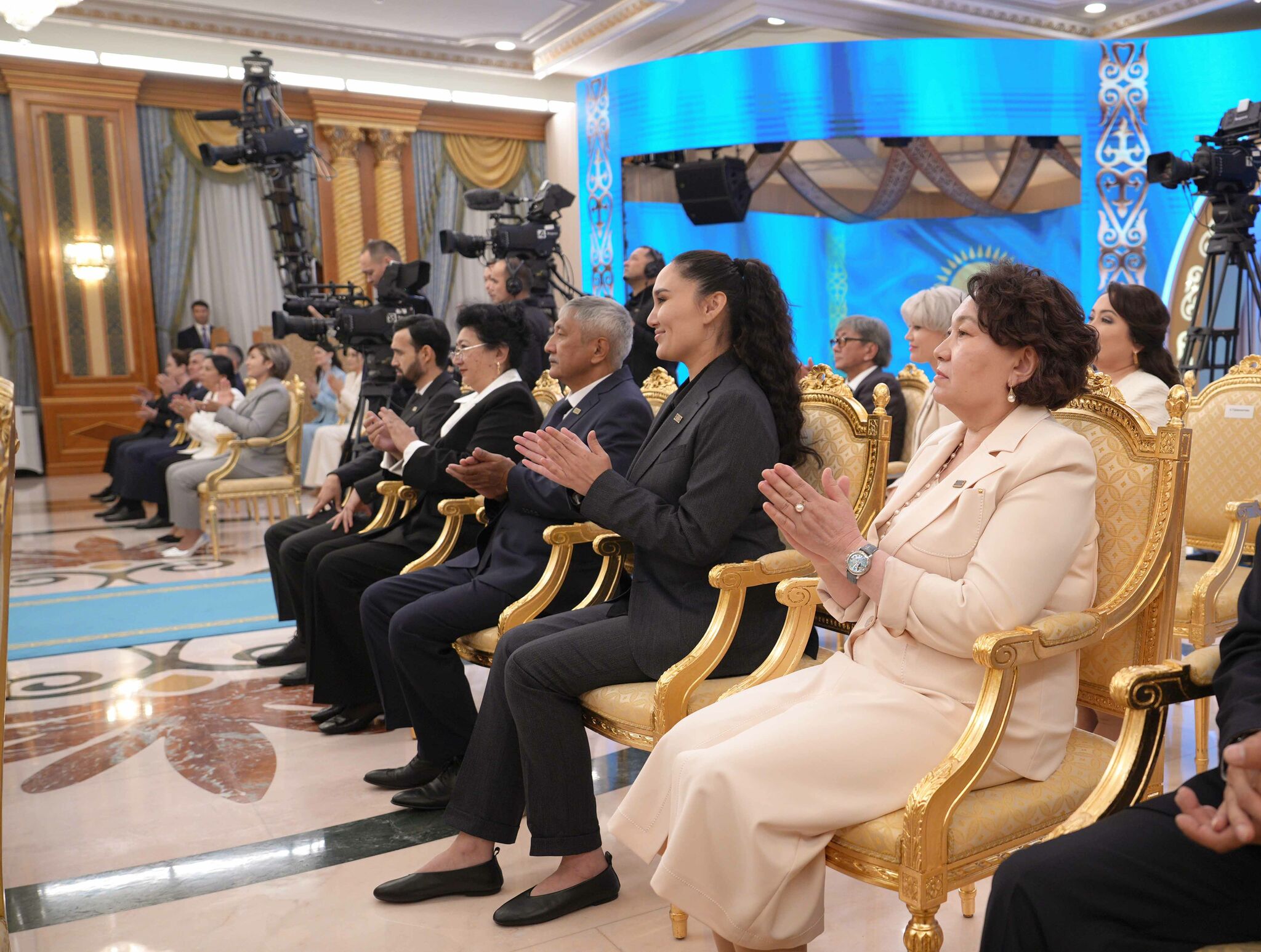 Далее Президент отметил, что государство и впредь будет оказывать всестороннюю поддержку деятелям культуры.– Сегодня выдающемуся казахскому певцу Кайрату Байбосынову будет присвоено звание «Қазақстанның Еңбек Ері». Народное искусство отражает духовный мир нашего народа, поэтому оно всегда должно занимать достойное место в нашей жизни. Это звание является свидетельством неоценимого вклада прославленного певца и глубокого уважения к культурному наследию, – подытожил Касым-Жомарт Токаев.Кроме того, за особый вклад в развитие и популяризацию национальной культуры, выдающиеся достижения в сфере культуры ряд граждан отмечен государственными наградами.