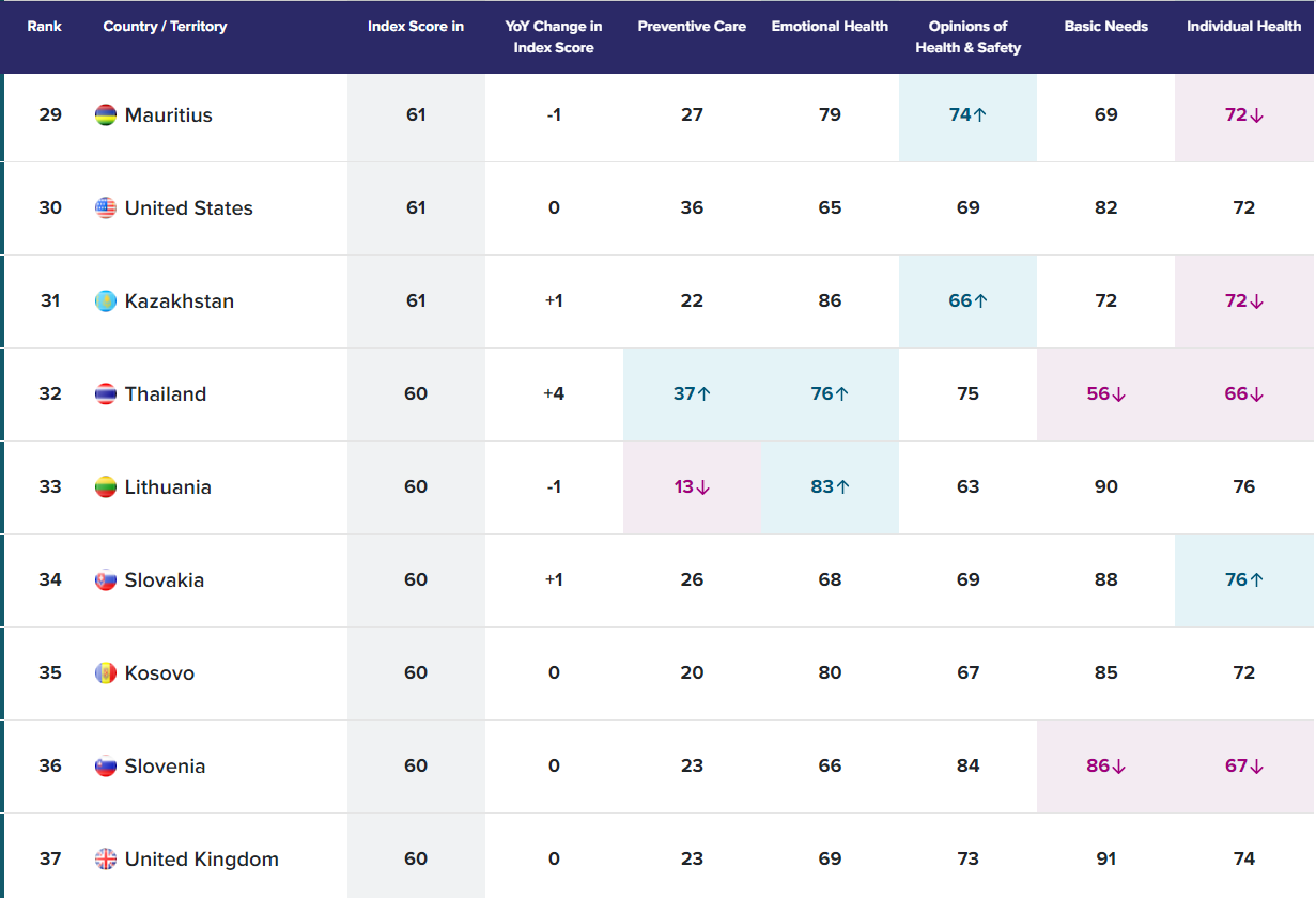 По сравнению с прошлым годом Казахстан поднялся в глобальном рейтинге отношения к женскому здоровью на 1 позицию, заняв 31 место, в то время как, к примеру, в Великобритании оно остается неизменным с 2020 года — 37 строчка в рейтинге. Франция заняла в рейтинге 40 место, Узбекистан — 52, Таджикистан — 55, Россия — 59, Канада — 61 место.