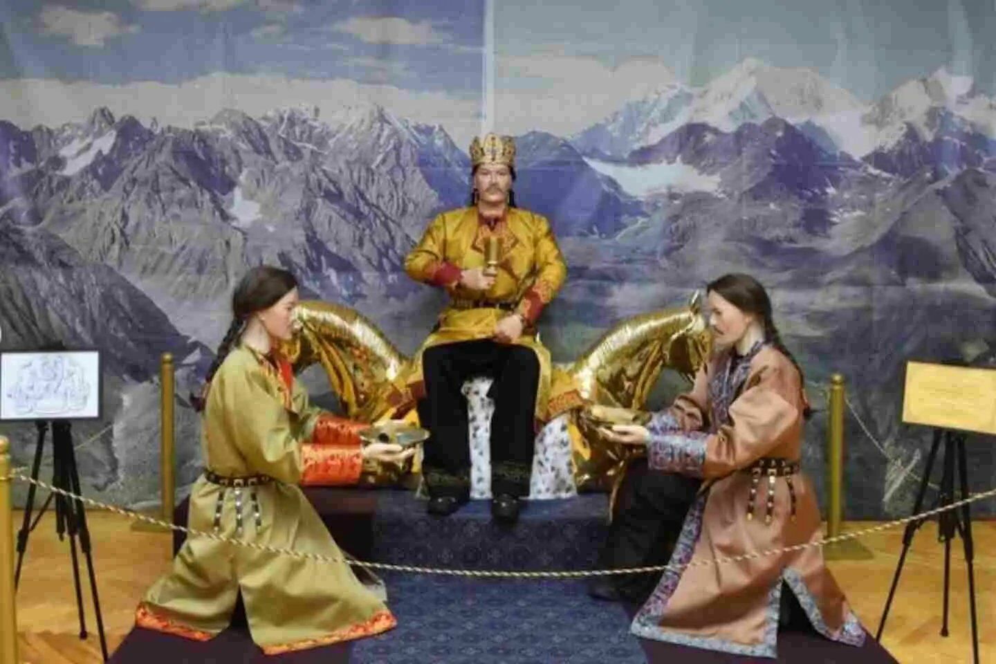 Большая часть из раритетов не имеет аналогов и являются бесценными реликвиями многовековой истории кочевников. В экспозиции, занимающей три зала, представлены находки из археологических памятников - некрополей Шиликты, Берел, Елеке сазы, Акжайлау, Каракаба. Среди них - украшения из золота, в том числе детали головных уборов и накладки на одежду, роскошное убранство лошадей, оружие, реконструкции костюмов знати с характерными «звериными» мотивами. Большинство предметов, обнаруженных при раскопках курганов, датируются VIII-VII вв. до нашей эры.