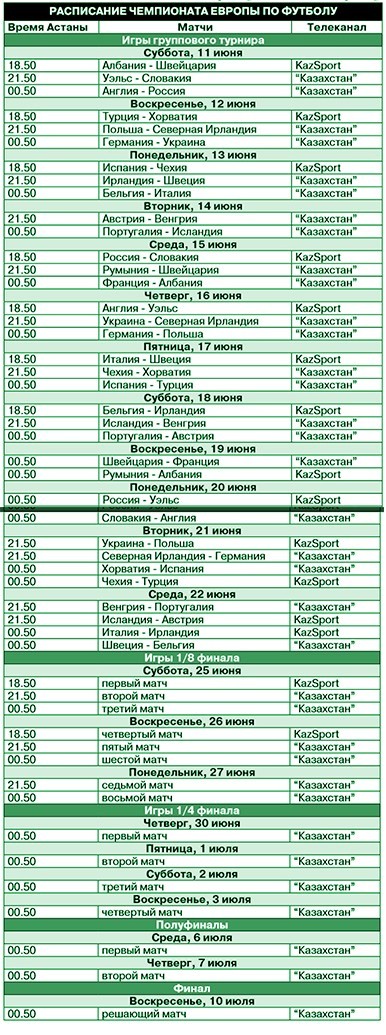 Сегодня, 15 июня, начнется второй тур группового раунда. В 19:00 по времени Астаны стартует матч Россия - Словакия, который в прямом эфире покажет KazSport. В 22:00 начнется встреча Румыния - Швейцария ("Казахстан"), а закроет игровой день игра Франция - Албания (начало в 01:00, "Казахстан").