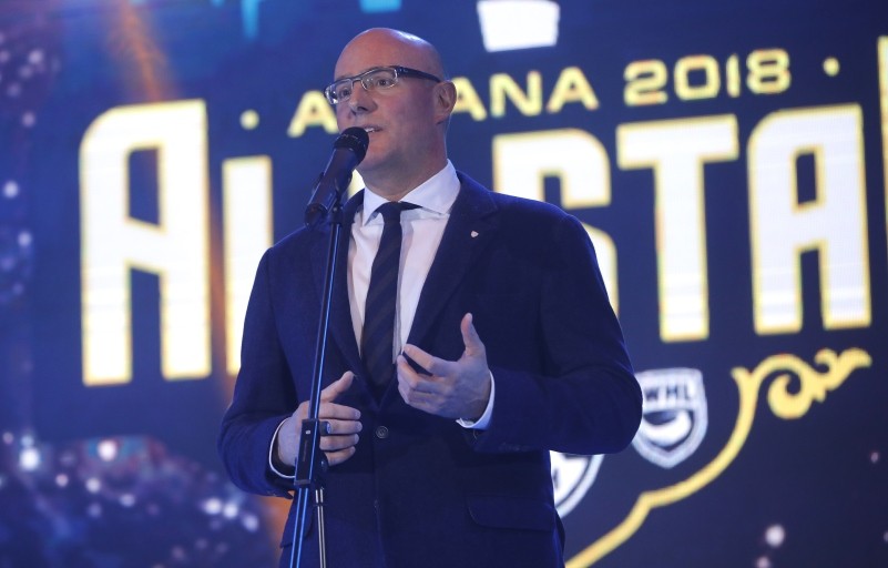 - Говорят, что Астана – это самый выдающийся город, который принял в 2017 году большое событие – это выставка ЭКСПО. Очень приятно наблюдать, как работает инфраструктура – наследие экономическое и спортивное, всё можно увидеть и пощупать. Поэтому неслучайно Астана была выбрана городом, который проводит очередную Неделю звезд хоккея. Это новый формат, который был впервые опробован в Уфе. Астана был среди четырех очень сильных конкурентов, там играла роль не только поддержка болельщиков, хотя и там астанчане выиграли, на всех сайтах проголосовало большинство за Астану. Ни у кого не было вопросов по выбору города, сейчас Астана – мировая столица хоккея, потому что внимание мира приковано к Матчу звезд КХЛ, который пройдет скоро. Вся Неделя проходит очень успешно, потому что вся инфраструктура прекрасно подготовлена для того, чтобы принимать крупнейшие спортивные и социальные события. Видно, что Казахстан – это спортивная держава, хоккей здесь любят, поддерживают, большое количество болельщиков, огромный интерес. Эта неделя необычна еще и тем, что она проходит в юбилейный 10й год для Лиги. Это очень символично, учитывая, что Казахстан – космическая держава, сюда приехало много звезд. Недавно уменьшенная копия Кубка Гагарина и шайбы были отправлены в космос. А к нам приехали космонавты с команды, которую создал еще Юрий Гагарин, сегодня на лед выходили прославленные космонавты России и Казахстана. Поэтому в шоу, которое сегодня предваряло выход хоккеистов, была такая мысль, что человечество стремится к звездам. Этот посыл здорово представлен на «Нур Алеме», где очень много связано с космосом. Поэтому звезды правильно сошлись, создался замечательный продукт и мы получаем сейчас подтверждение, что оправдан недавно выбранный формат проведения целой Недели Звёзд Хоккея, которая начинается с самого красивого состязания представительниц Женской Хоккейной Лиги, продолжается жаркой схваткой за Кубок Вызова Молодёжной Хоккейной Лиги, сегодня конкурсы, а уже завтра матч 4х дивизионов за самый главный приз, определится, кто выиграет в матче всех звезд КХЛ. Это большой праздник, здесь все отдыхают, получают удовольствие, но при этом показывают новые рекорды и новые достижения, только что был установлен рекорд скорости на вашей арене. Возможно, он продержится очень долгое время. Так что мы очень благодарны Астане, благодарны Казахстану, за поддержку прежде всего правительству Республики, народу Казахстана, потому что без них такое грандиозное мероприятие невозможно было бы провести, конечно, хотелось бы поблагодарить руководство столицы и клуб «Барыс». Это клуб, который находится в Лиге со дня её основания, показывает выдающиеся спортивные результаты и играет на самой лучшей арене в КХЛ. Совокупность этих факторов поднимает планку проведения НЗХ очень высоко, поэтому следующим городам-кандидатам, которые мы сейчас рассматриваем, будет очень непросто для достижения астанинского уровня, если это вообще возможно.