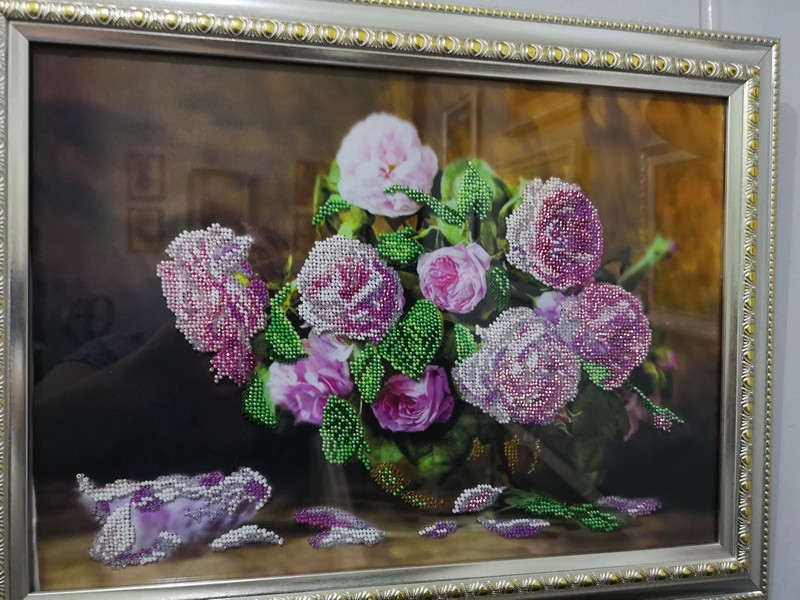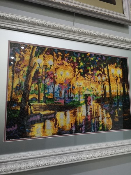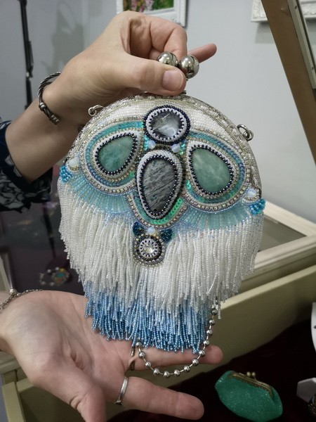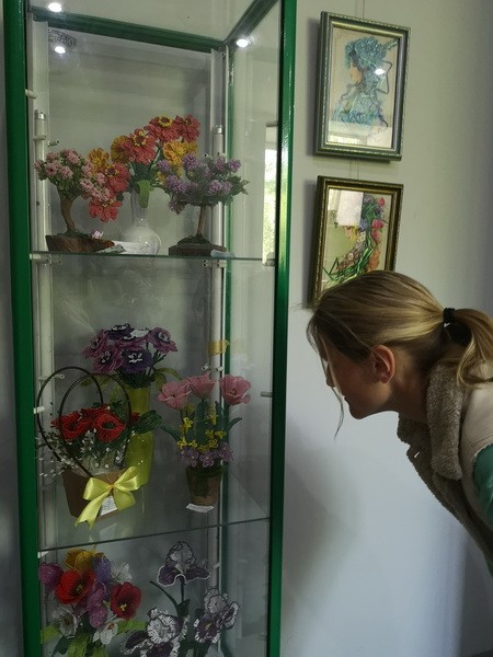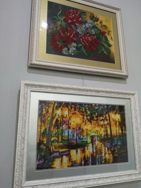 Картины и украшения рукодельниц из Астаны, Алматы, Шымкента, Кокшетау и Жанаозена, а также гостей из России заполнили лишь небольшую комнату в Центральном выставочном зале. И это вполне понятно: свой труд любительницы бисероплетения сравнивают с ювелирным. Тут важно не количество, а изобретательность и тонкость работы. Зато на небольшом пространстве представлены все жанры этого хобби, и глаза разбегаются от разнообразия материалов. Есть традиционные цветы и букеты, есть затейливые вышитые картины по готовым мотивам. Но, конечно, больше всего авторских украшений из бисера в сочетании с тканью, мехом, природными камнями. Тут все зависит от фантазии автора.