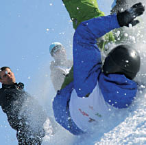 За девчонками атаковать склон бросились мужчины-лыжники и сноубордисты. Здесь развернулась жесткая борьба, потому что всем хотелось продемонстрировать самый крутой трюк. Однако немногие смогли “приручить” трамплин Big Air. Многие ковыляли после приземления, прихрамывая: падения в этом виде спорта нередки и чреваты. Наиболее распространенные травмы у райдеров - вывихнутые и сломанные плечи и запястья. Среди алматинских экстремалов есть один, о котором ходят легенды. Каждые соревнования Алексей СУЛИМОВ заканчивает с выбитым плечом. И нынешние, увы, не стали исключением.